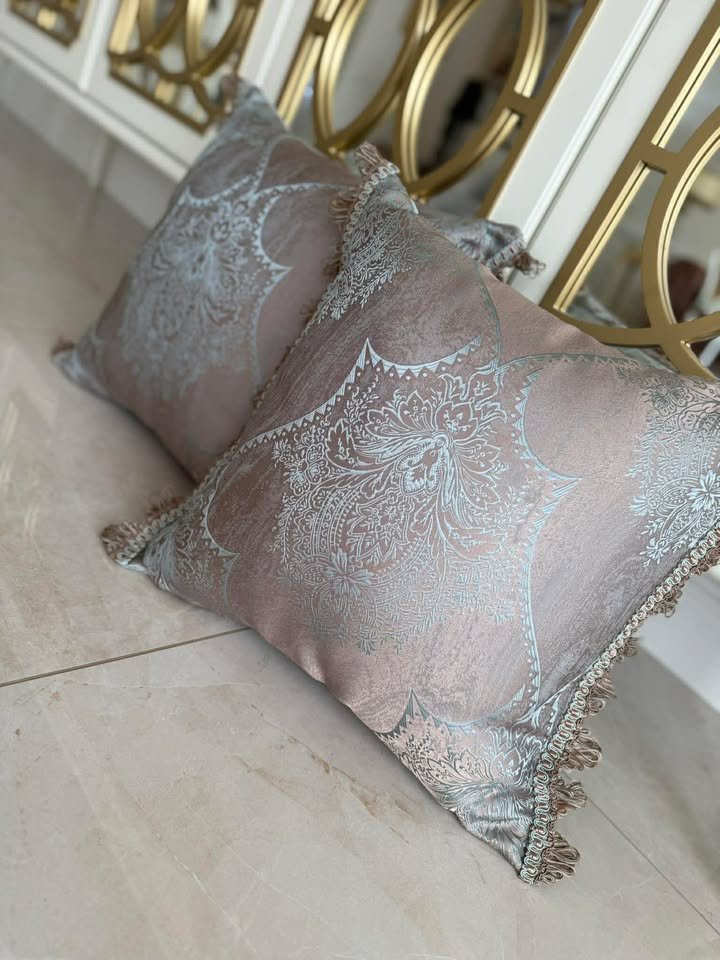 Stilinga ir elegantiška dekoratyvinė pagalvėlė, kuri suteiks jūsų namų interjerui jaukumo ir subtilios prabangos. Švelnus audinio raštas ir dekoratyviniai krašteliai sukuria išskirtinį dizainą, puikiai tinkantį tiek klasikiniam, tiek moderniam interjerui.