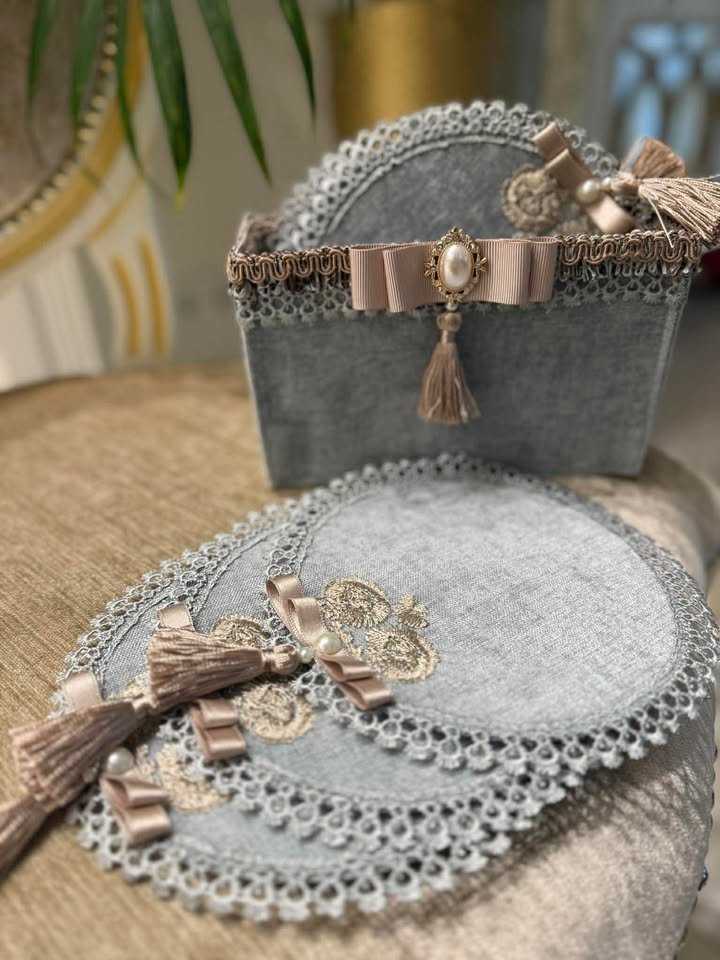 Turkio spalvos kavos padėkliukų rinkinys – dėžutėje su dekoru